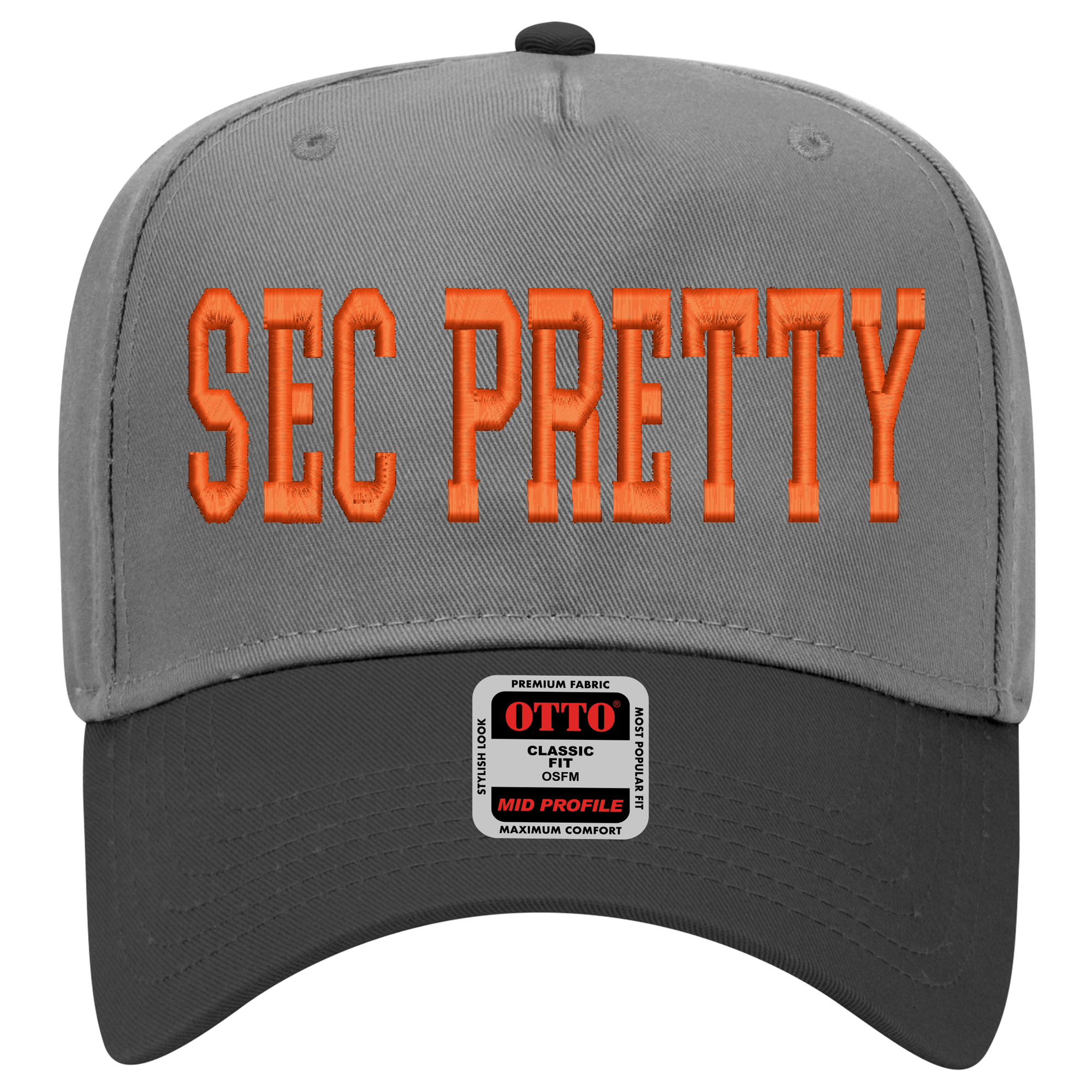 Gray Hat with Orange Letters and Orange Lid